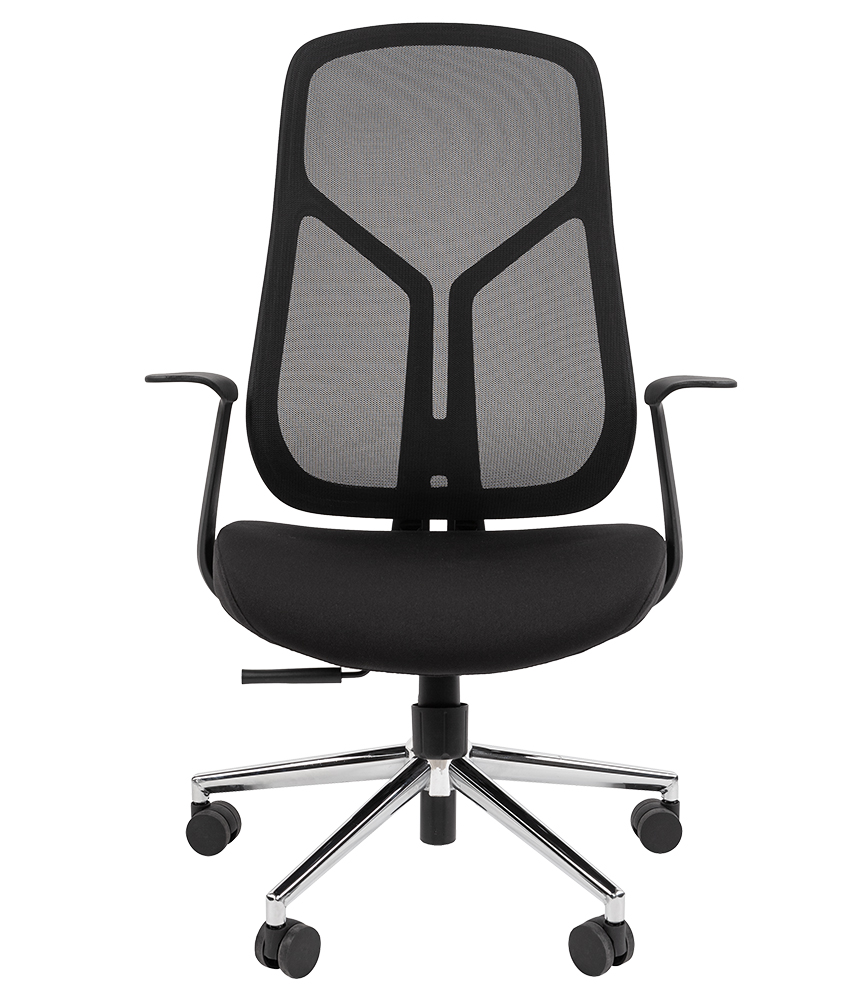 С синхронным отклонением сидения и спинки 1:3, с фиксацией кресла в нескольких положениях. Регулировка кресла по высоте